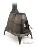 Поверхности печи окрашены двумя цветами. Дверца, ножки, конфорка и конус дымохода черные, а поверхности корпуса мерцают бронзовым блеском.